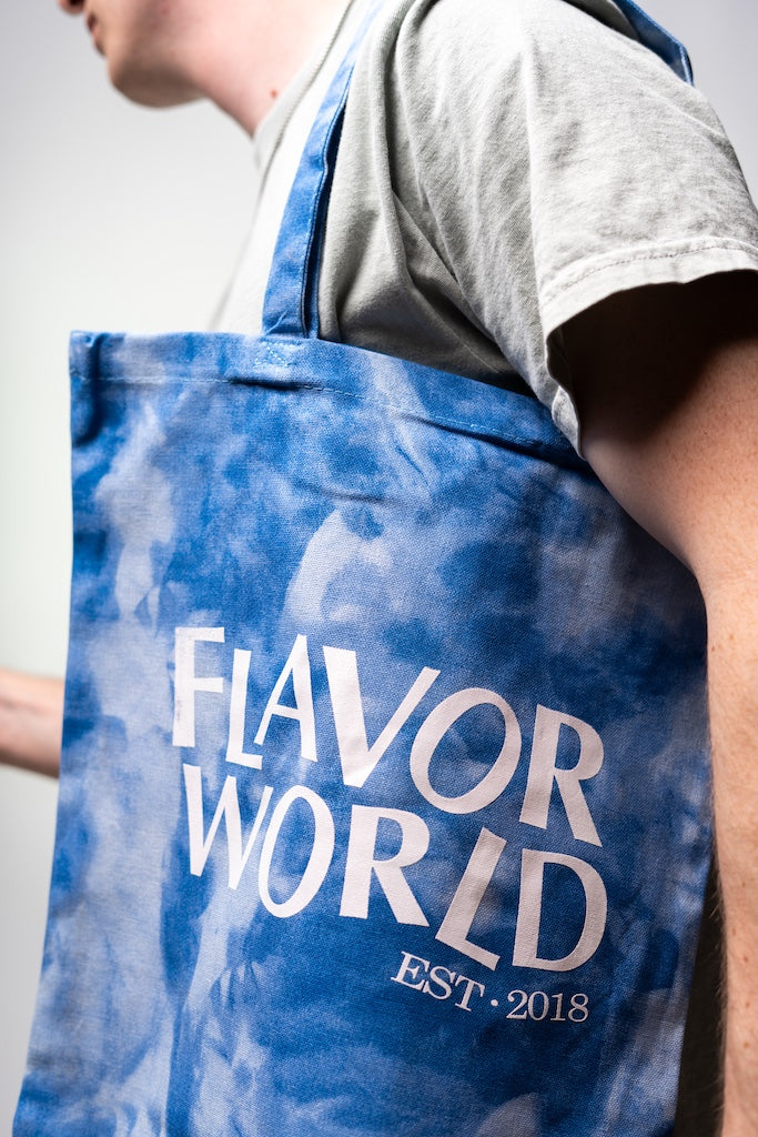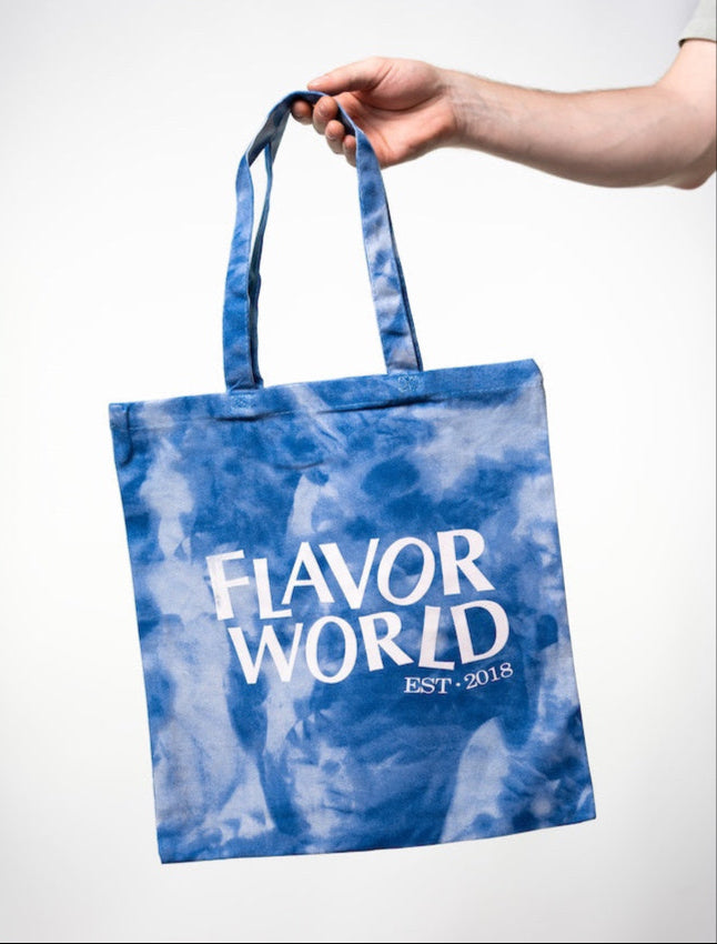 The most Flavorful tote bag the Twin Cities has ever seen! This blue and white tie-dyed tote is big enough for books, a copy of Flavor Mag, a chess board, sketchbooks, and more!